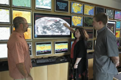Meteorology Professor James Koermer, Assistant Professor Lourdes Aviles, Information Technologist Brendon Hoch and senior meteorology major Richard Giard joined the festivities at the Christa McAuliffe...