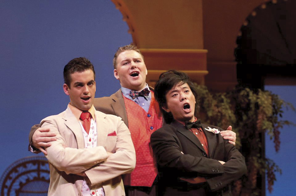 Daniel Brevik '11 (center) appeared as Don Pedro in the New England Conservatory's production of La Perichole.