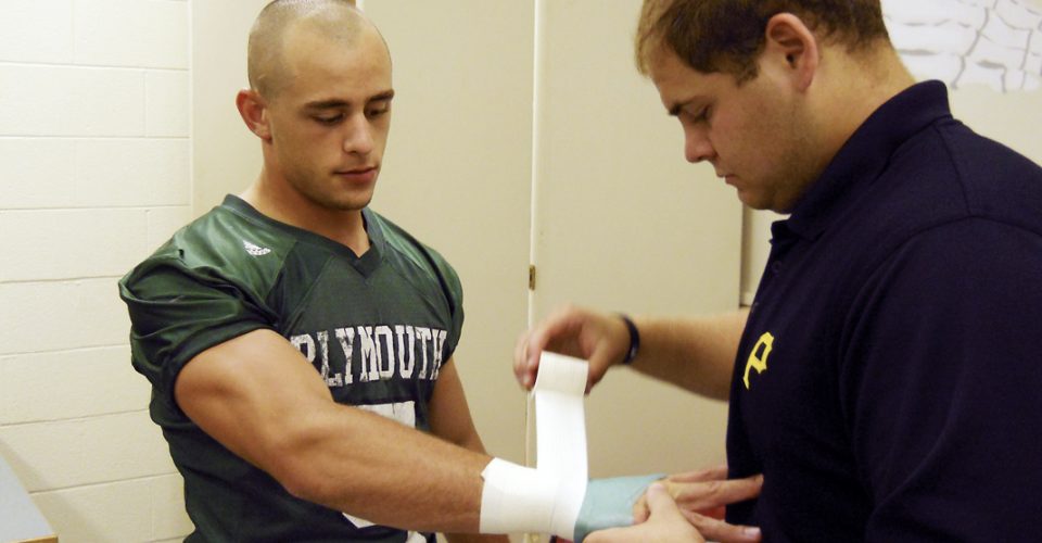 “I wanted to work with football, and I wanted to work with students,” he says. When an opening came up at Plymouth State, he was excited to return as a faculty member. “This is a solid athletic training program with a good reputation,” he says. “The ability to practice what you’re learning—the amount of hands-on experience you receive—is a really strong suit of the program.”