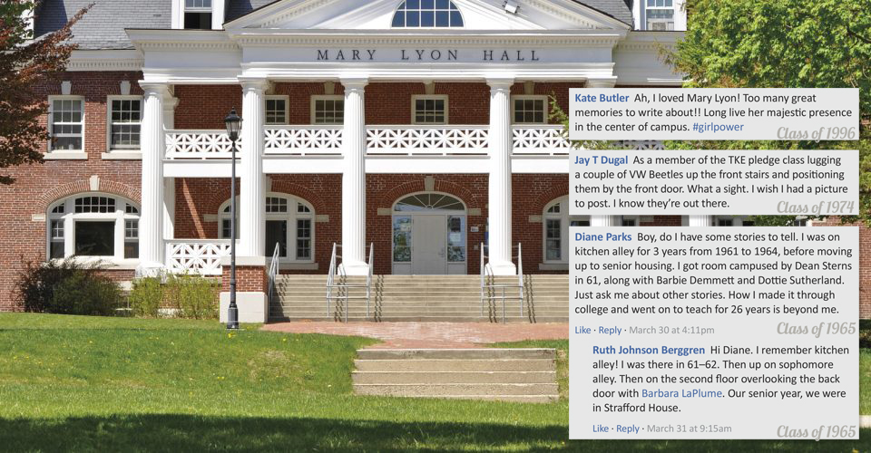 More than a campus icon, Mary Lyon has been home to generations of students, many of whom have cherished memories of their beloved residence hall. Have some of your own Mary Lyon memories or photos that you’d like to share? Find us on Facebook, Instagram, and Twitter and tag #marylyon100.