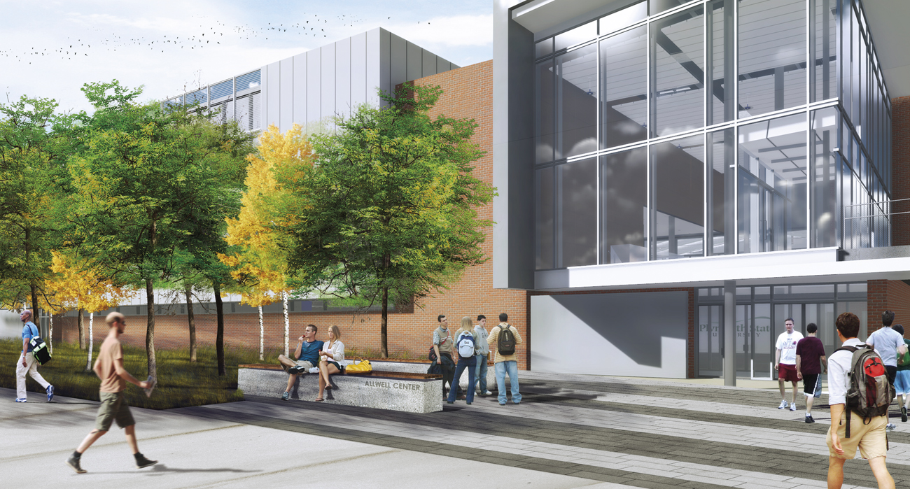 While the state and region will benefit greatly from the presence of ALLWell North on campus, the state-of-the-art building will establish an attractive, welcoming entrance to the campus; enhance PSU’s faculty and student recruitment efforts; and transform the academic and athletic experience for more than 75 percent of the student body who will use the building as a classroom, as varsity competition and training space, as a place to participate in intramural sports, and other recreational opportunities.