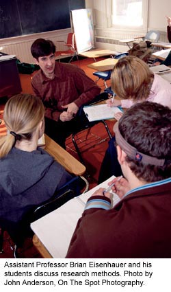 Brian Eisenhauer wanted students in his research methods class to experience a taste of real-world research. The Squam Lakes Natural Science Center-an educational center in Holderness visited by thousands of schoolchildren each year-needed to design an evaluation of their exhibit on solar energy. So last year, Eisenhauer (an assistant professor in PSU’s social science department) gave his students the task of creating a research design, distributing questionnaires to visitors and compiling the results in a report for the Science Center. The students’ research showed that visitors found the exhibit educational, interesting and effective. The research also offered the Science Center important feedback on what types of exhibits worked for visitors, and which failed.