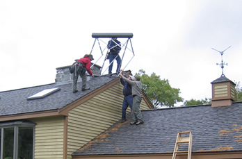 An “energy raiser” in action. PAREI members pitch in to install a solar water heating system.