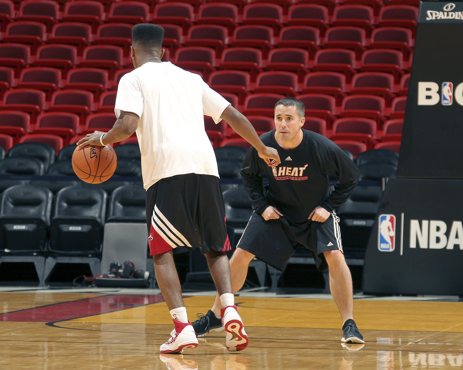 Dan Craig '03 working out the Heat's Norris Cole at the American Airlines Arena in Miami. Isaac Baldizon, NBA Photos.