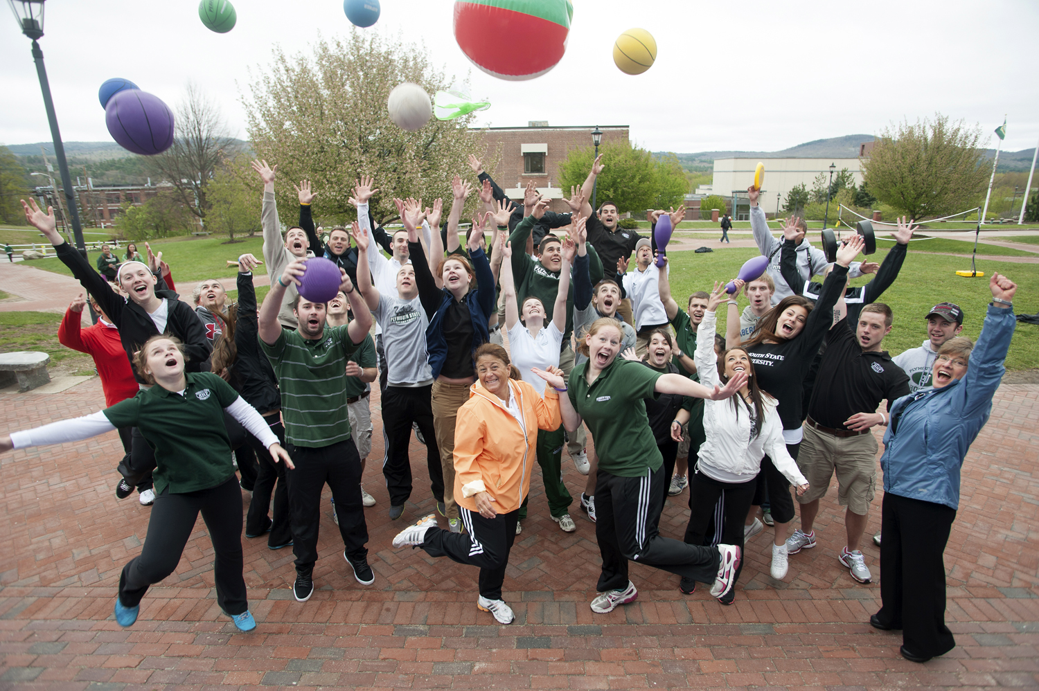 Cucina (in orange), students, and faculty in the health and human performance department had a ball promoting Project ACES (All Children Exercising Simultaneously) at PSU in May. Now in its 24th year, Project ACES is a worldwide annual event to promote physical activity for children. Kindra Clineff photo.