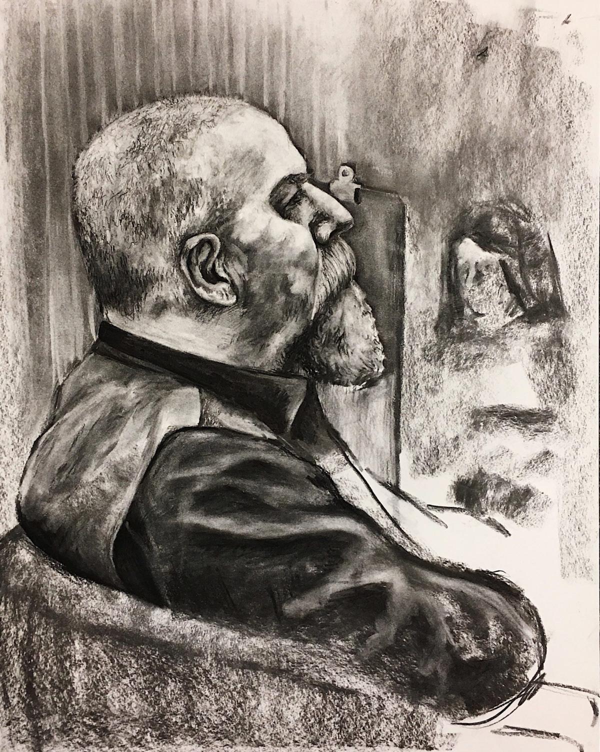 I first met Jay my sophomore year at PSU when he was the model for portraits in my figure drawing class. I was so proud of that drawing and for the next two years walking the halls of D&M, I looked forward to seeing the next classes portraits of Jay line the 2nd Floor hallway. Jay was always one of my favorite faces to see around Plymouth. Almost every morning, when I stopped at Chase Street to grab coffee, I would bump into him and get into conversations about life and art that would more often than not make me late to class in D&M. He was always so interested in my art and what I was creating and I am so grateful to have had the opportunity to celebrate art with him.