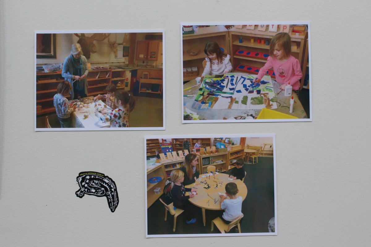 A: The process of organizing and installing an exhibition is a rewarding experience because you literally get to see ideas come to life. It’s wonderful getting to work with multiple people from different backgrounds and with contrasting interests. It was also wonderful to work with students at the Blue Heron School at the Squam Lakes Natural Science Center. Their enthusiasm for learning and making is what makes this project and work even more exciting. People at their young age are vital members of our community who will be able to create positive change in the future. To be able to assist them with their artwork, include them in the exhibit, and see how happy they were to be a part of it all was an honor. It reminds us why this type of work is important, and that we are helping to educate and inspire the next generation of artists and scientists.
