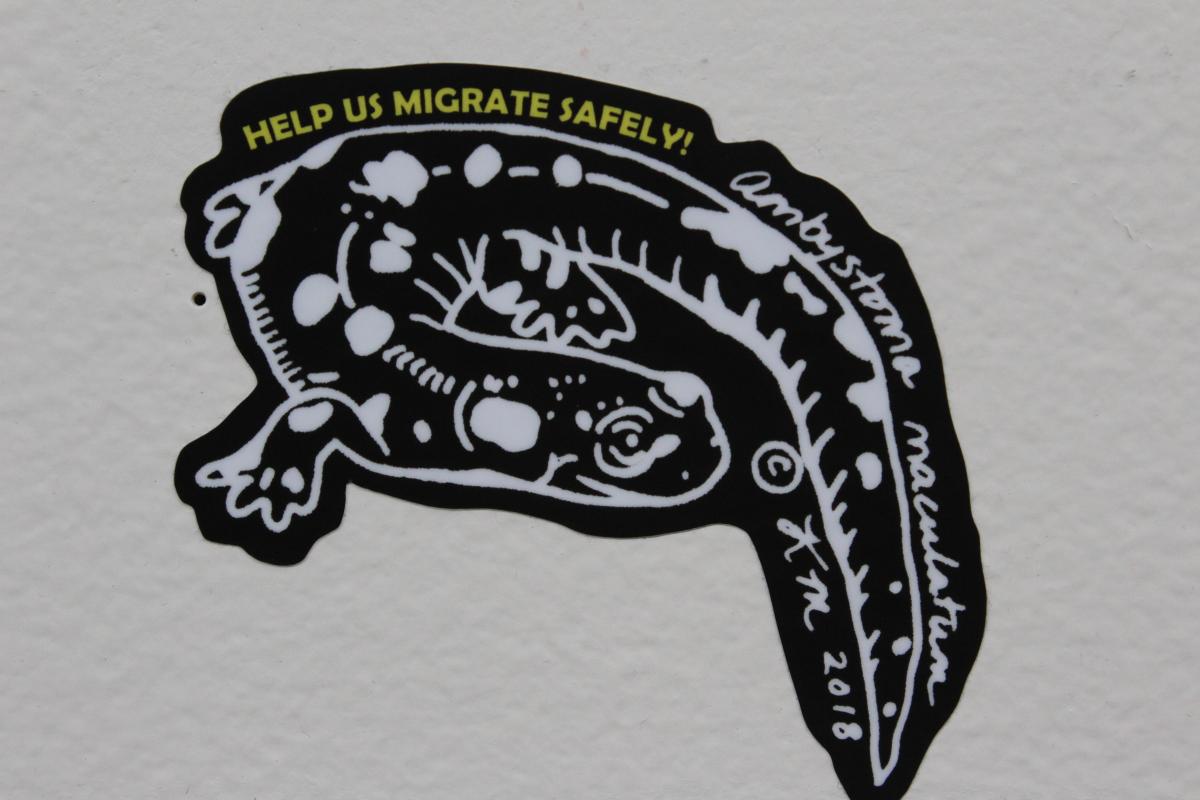 A: Ever since I can remember I have been intrigued by vernal pools and the miraculous creatures that inhabit and depend on them. I would always wait eagerly for early spring when the salamanders and frogs began to migrate and knew that I had the power as an individual to assist these species that are often directly affected by us. As an artist and a maker, it is a powerful feeling to know that I have the option to utilize my creative energy and knowledge to help others. It was about a year ago from now when I started to become even more interested and inspired by vernal pool life and the incredible annual migration they complete. At the time I was starting to experiment more with different screen printing techniques and modes of installing work, so I wanted to expand my work even more by printing approximately sixty different reptile and amphibian species with the idea of creating a migration journey, Vernal Migration. I was honored when Cynthia Robinson asked me to help with this exhibit and was interested in having my artwork showcased along with other student and faculty work. This semester I wanted to create another piece, Through the Seasons: Vernal Pool life, that not only illustrated some seasonal behaviors of certain species but that also textually displayed how they live throughout the many months of the year. They are mysterious creatures and a lot of information is still yet to be discovered about them and vernal pools in general. By sharing my own admiration and knowledge for them through art, I am hopeful that others will be inspired to act and create as well, continuing to search for more answers and ideas.
