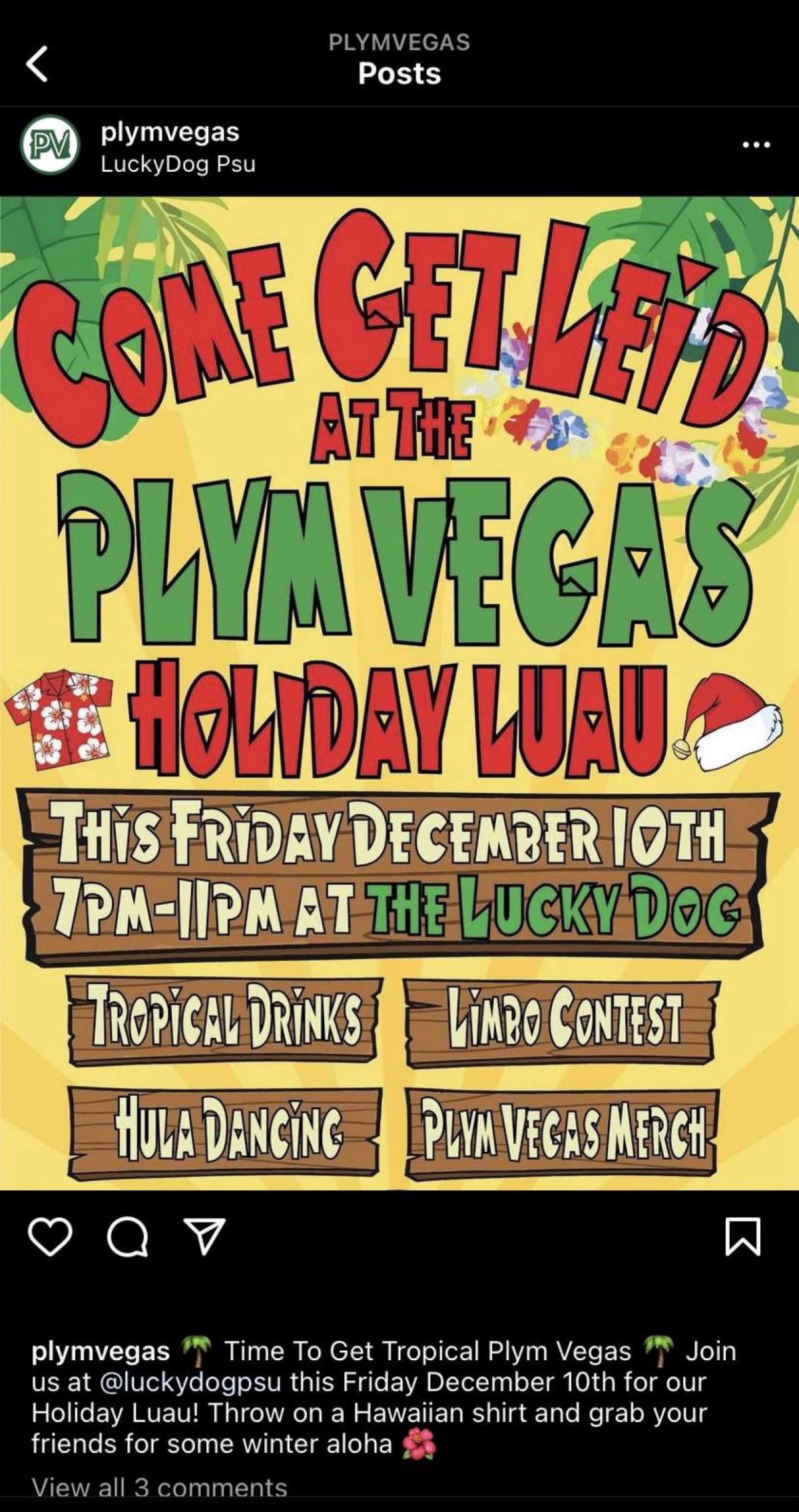 This type of appropriative behavior is not out of the ordinary for PlymVegas as on December 10th of 2021, they held a Holiday Luau under the tagline “Come Get Leid”.