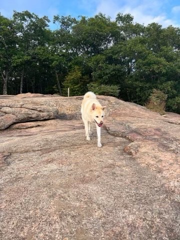 We arrived at the trailhead at ten past five in a sizable parking lot fitted with free bathrooms, picnic tables, and a reasonable $5 per vehicle fee based on the honors system. Although the lot is large, I have never encountered many people on the trail at any time today; usually only passing a handful. The trek began with a steady and rocky incline accompanied by a small brook and many types of trees and moss welcoming us into their space of serenity. This wooded patch continued on for about 1.2 miles before we reached the first of many long stretches of flat rock. The first viewpoint was just beyond the 1.3-mile mark at 821ft of elevation gain, and what a view it was.