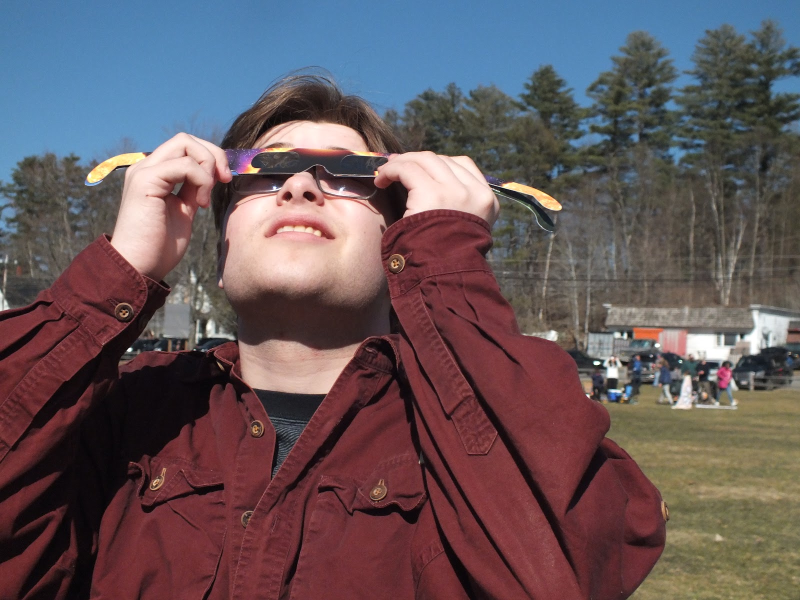 Jessen Delaney views the solar eclipse in Lancaster, NH. Photo by James Kelly.